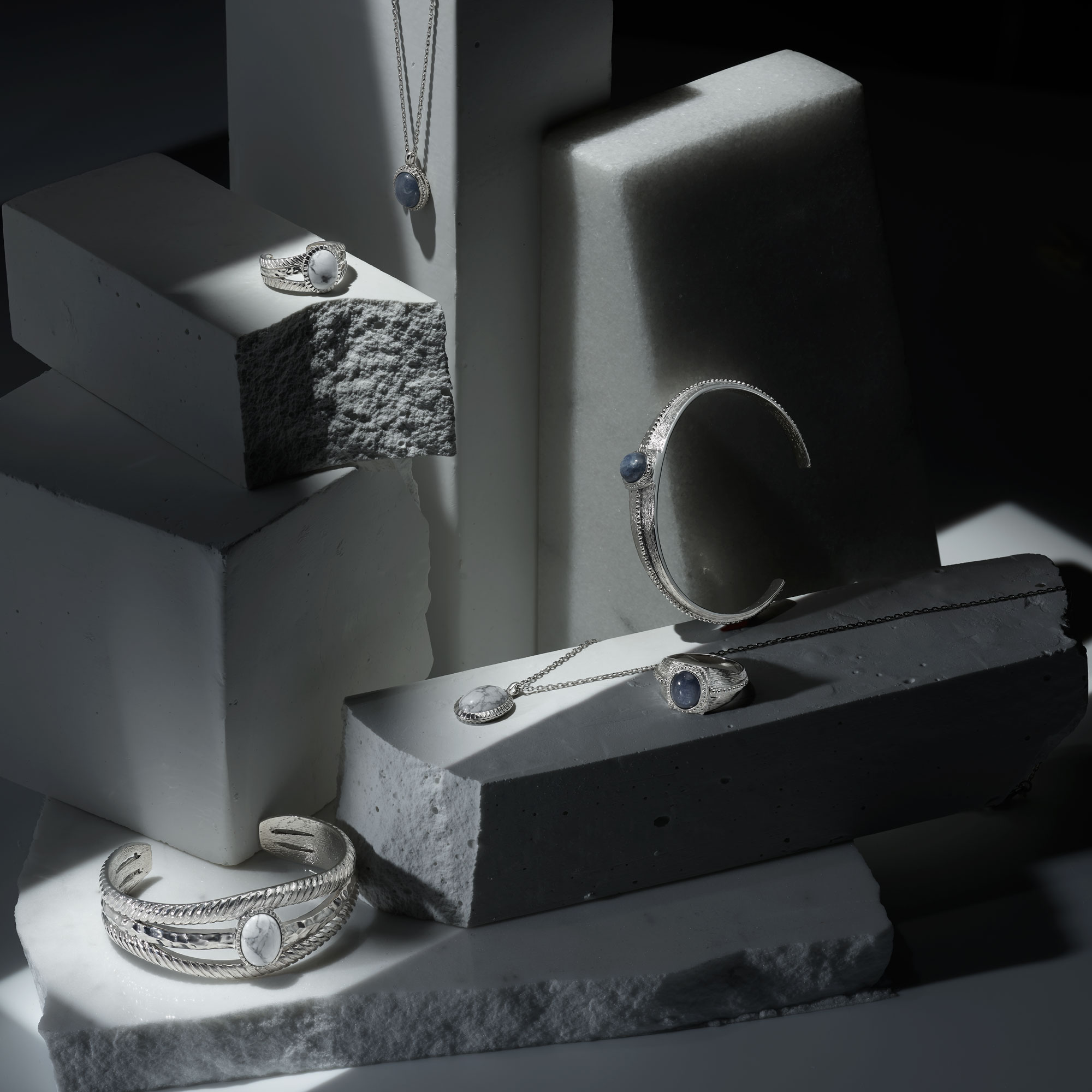 シルバー925/ピュアプラチナコーティング、ホワイトハウライト